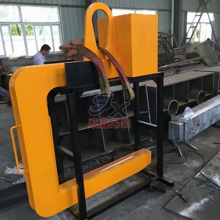 C型吊具適用于鋼卷的水平吊運(yùn),由吊具體和配重鐵組成。主體部分由合金鋼和鋼管拼接而成,截面為箱型結(jié)構(gòu),配重鐵起調(diào)節(jié)吊具平衡的作用,使吊具和被吊物的重心在一條線(xiàn)內(nèi)。載荷范圍:3.2-32噸。
